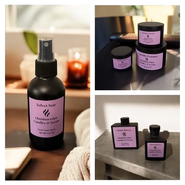 Obsidian Glow Candles & Scents exudes sophistication with meticulously crafted products that elevate any space. Our candles are made with premium wax blends and thoughtfully curated fragrances that inspire elegance and relaxation. Each scent is designed to foster an inviting atmosphere, perfect for moments of tranquility or celebration. Discover the artistry behind our brand and transform your environment with a touch of luxury.